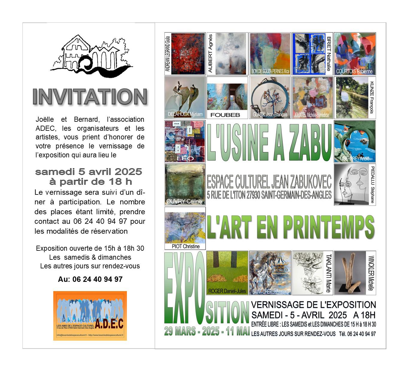Amfreville la Mivoie du 20 au 23 mars 2025, Usine à Zabu à Saint Germain des Angles du 29 mars au 11 mai 2025